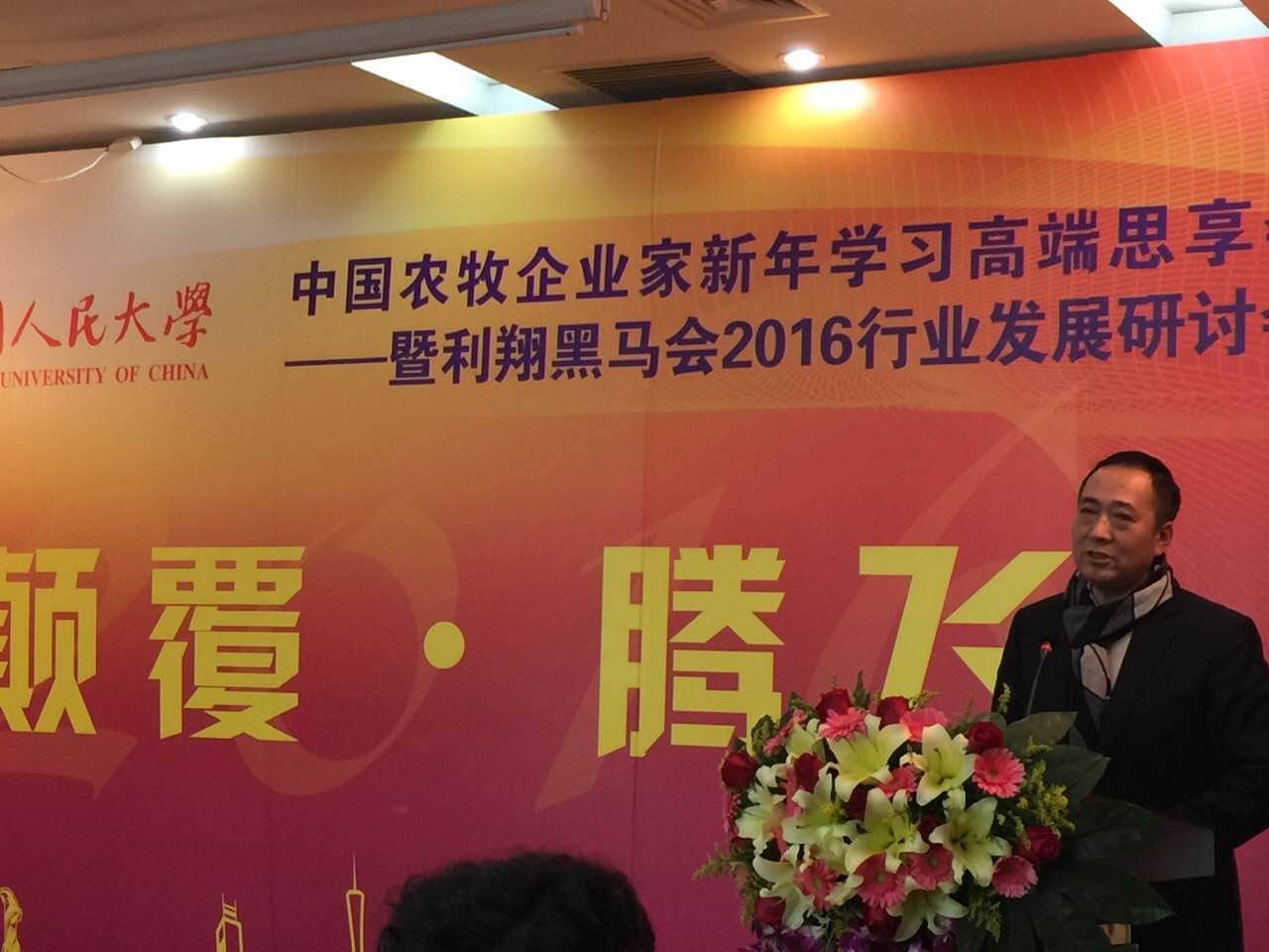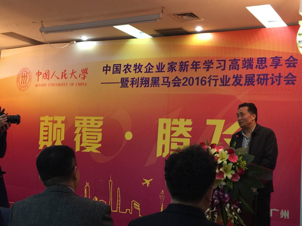2016中國農(nóng)牧企業(yè)家新年學習高端思享會 暨利翔黑馬會2016行業(yè)發(fā)展研討會勝利召開 —— 張利庠教授:跨界思維顛覆行業(yè)思維 — 世界是一個系統(tǒng)、不是一個專業(yè);消費綁架生產(chǎn)、金融決定實業(yè)、系統(tǒng)大于專業(yè);文化和心態(tài)顛覆技術(shù)和生存 — 從“取勢”到“明道”,不僅是賺錢、還要為全人類面臨的重大挑戰(zhàn)提出解決方案,從浮躁到安穩(wěn),企業(yè)家應該為興趣、為理想、為夢想而創(chuàng)業(yè)創(chuàng)新,"明道"未來!會上和農(nóng)牧業(yè)集團董事長方彥明先生也作了精彩分享!
