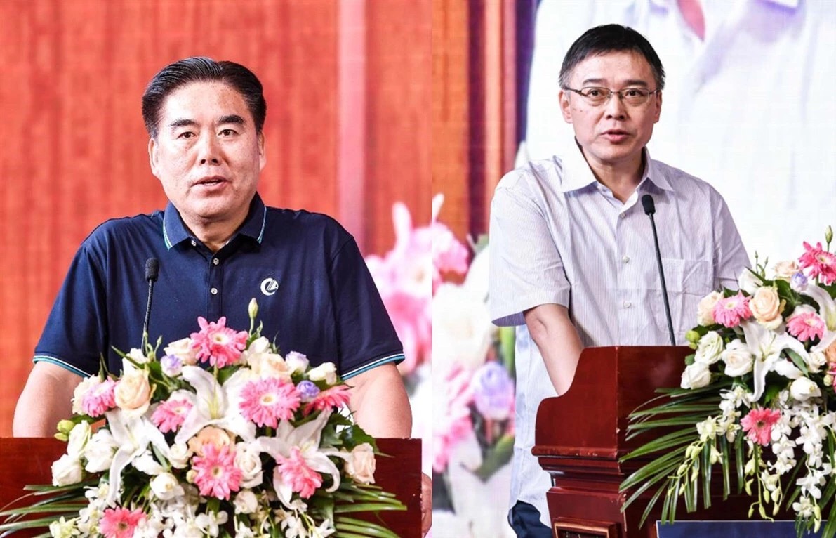 致辭:左為中國(guó)畜牧業(yè)協(xié)會(huì)會(huì)長(zhǎng)李希榮,右為農(nóng)業(yè)農(nóng)村部食物與營(yíng)養(yǎng)研究所副所長(zhǎng)王曉紅