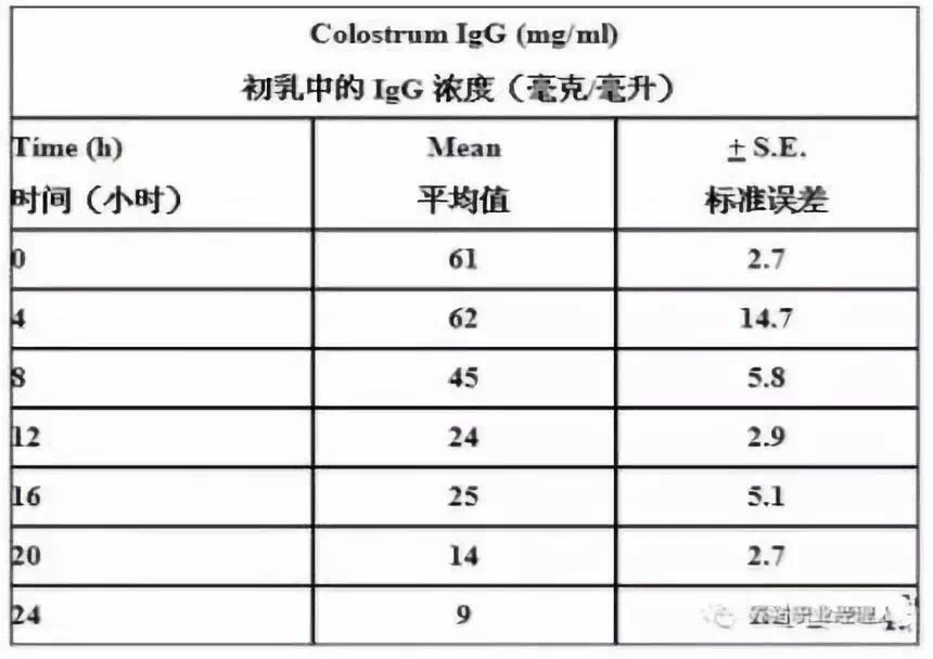 寄養(yǎng)其實對母豬和仔豬來講均是一種應(yīng)激,且寄養(yǎng)易導(dǎo)致疾病交叉感染,所以產(chǎn)房應(yīng)盡量減少寄養(yǎng),特別要嚴(yán)禁跨單元寄養(yǎng)。當(dāng)產(chǎn)后母豬泌乳量嚴(yán)重不足、產(chǎn)仔數(shù)過多、母性差、母豬體弱多病、有惡癖或甚至母豬死亡時才可考慮寄養(yǎng),寄養(yǎng)應(yīng)在仔豬出生后24小時內(nèi),并保證仔豬吃到充足初乳后進(jìn)行。由表1可以看出,初乳中的IgG濃度其實到了產(chǎn)后12小時只有剛產(chǎn)完時的一半都不到。產(chǎn)后24小時幾乎只有剛產(chǎn)完時的1/7的濃度。