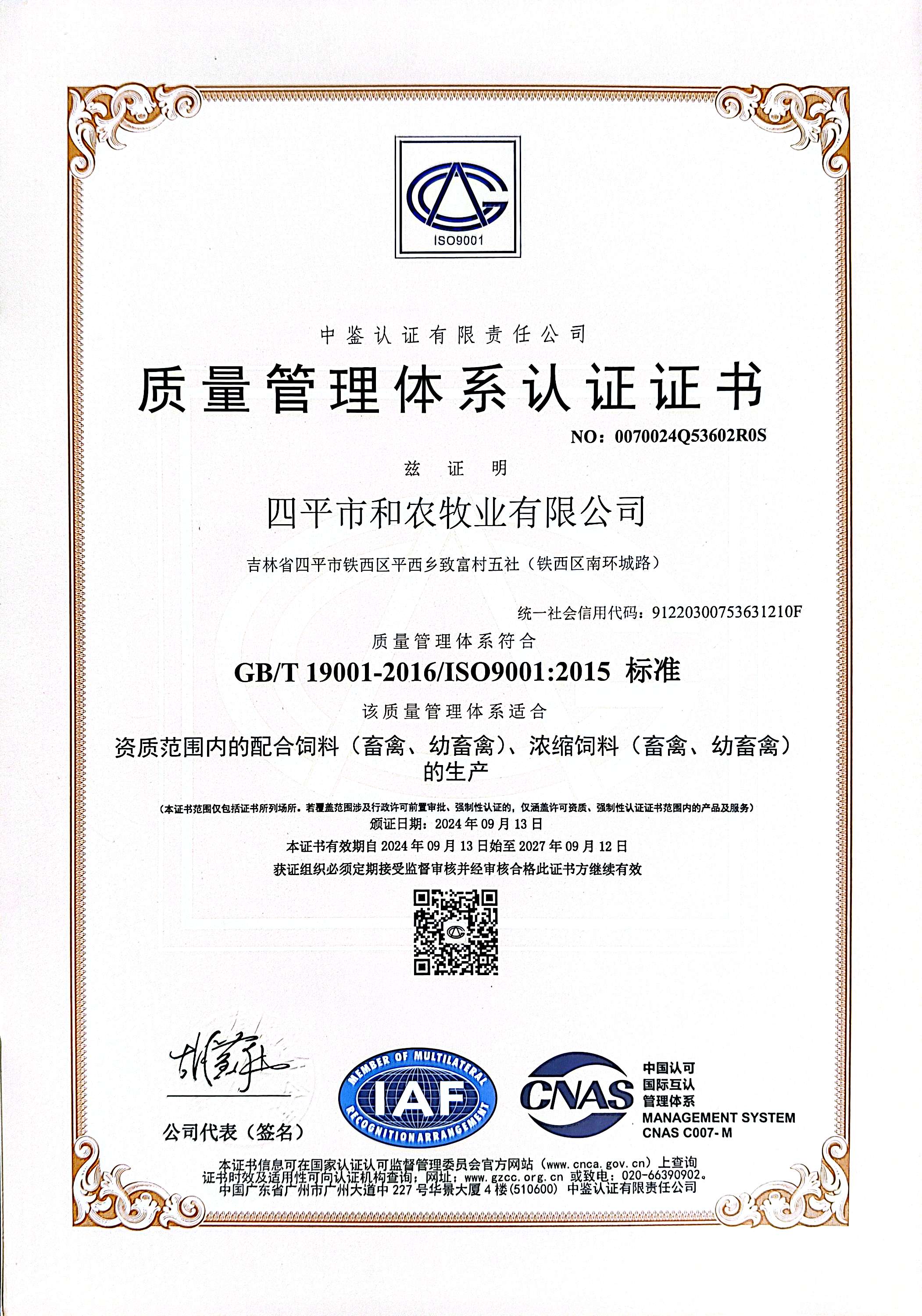 質(zhì)量管理體系認(rèn)證證書